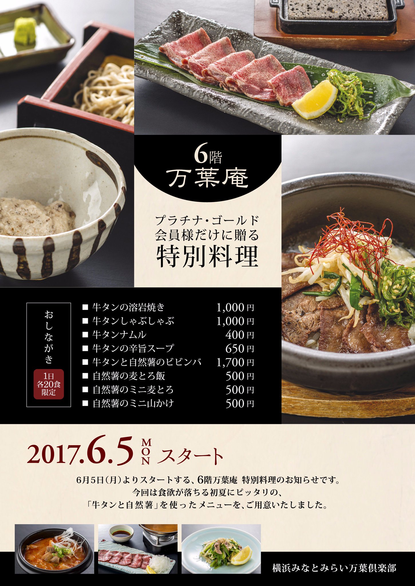 横浜みなとみらい 万葉倶楽部 בטוויטר 万葉プレミア倶楽部より プラチナ ゴールド会員様だけに贈る特別メニュー 今回は食欲が落ちる初夏にぴったりの 牛タンと自然薯 を使ったメニューを ご用意いたしました Https T Co Xk5znwnwcg 横浜 みなとみらい