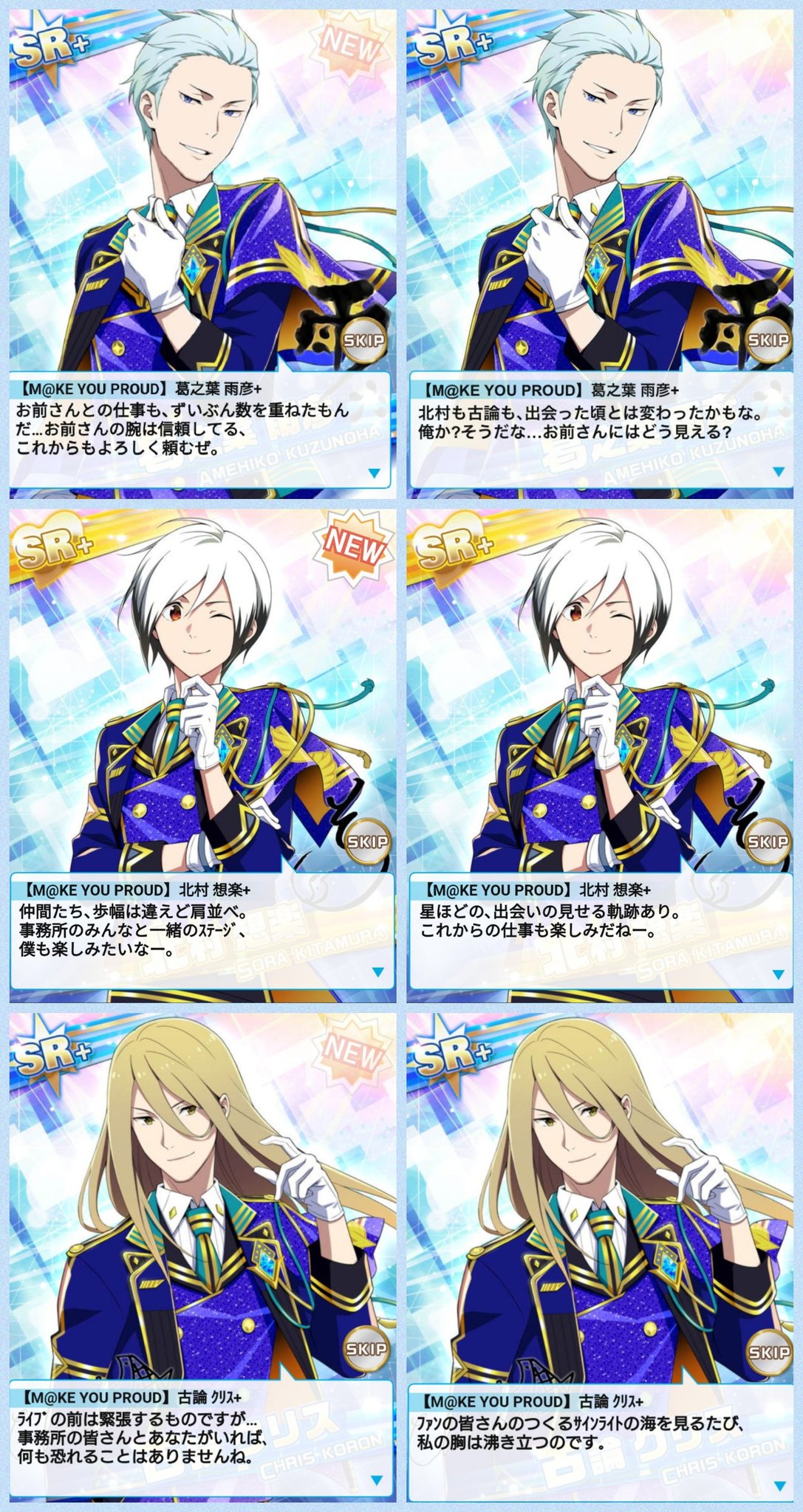 若菜p Sur Twitter M Ke You Proud スカウト台詞 1回目と2回目差分まとめました Side Mdate Specialthanks Twitterの集合知 Legenders 雨彦 想楽 クリス