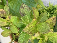 紫陽花の葉がおかしい病気でしょうか 去年鉢植えで買った紫陽花です ガーデニング 家庭菜園 教えて Goo