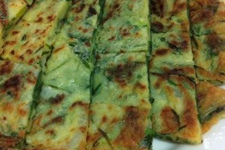 ニラ ズッキーニのプッチンゲ チヂミ レシピ 作り方 By ちぃちぃちぃちゃんち クックパッド