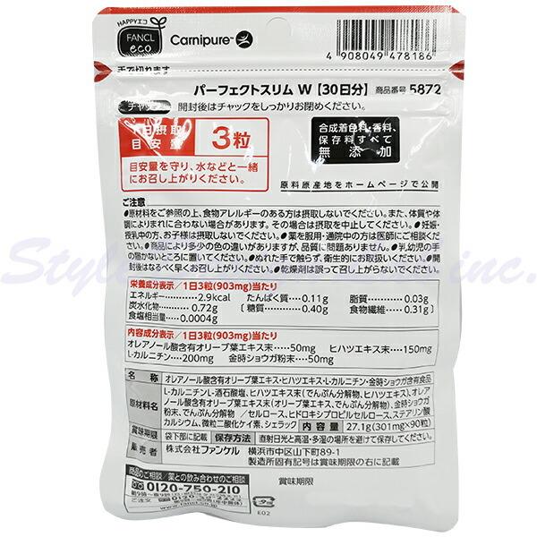 ゆうパケット可 ファンケル パーフェクトスリムw 90粒 30日分 オレアノール酸含有オリーブ葉エキス ヒハツエキス L カルニチン 金時ショウガ含有食品 4908049478186 デュアルストア 通販 Yahoo ショッピング