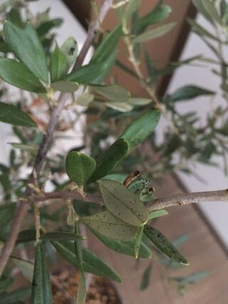 オリーブの木の新芽に虫がつきます 虫は新芽の葉っぱと葉っぱを合わ Yahoo 知恵袋